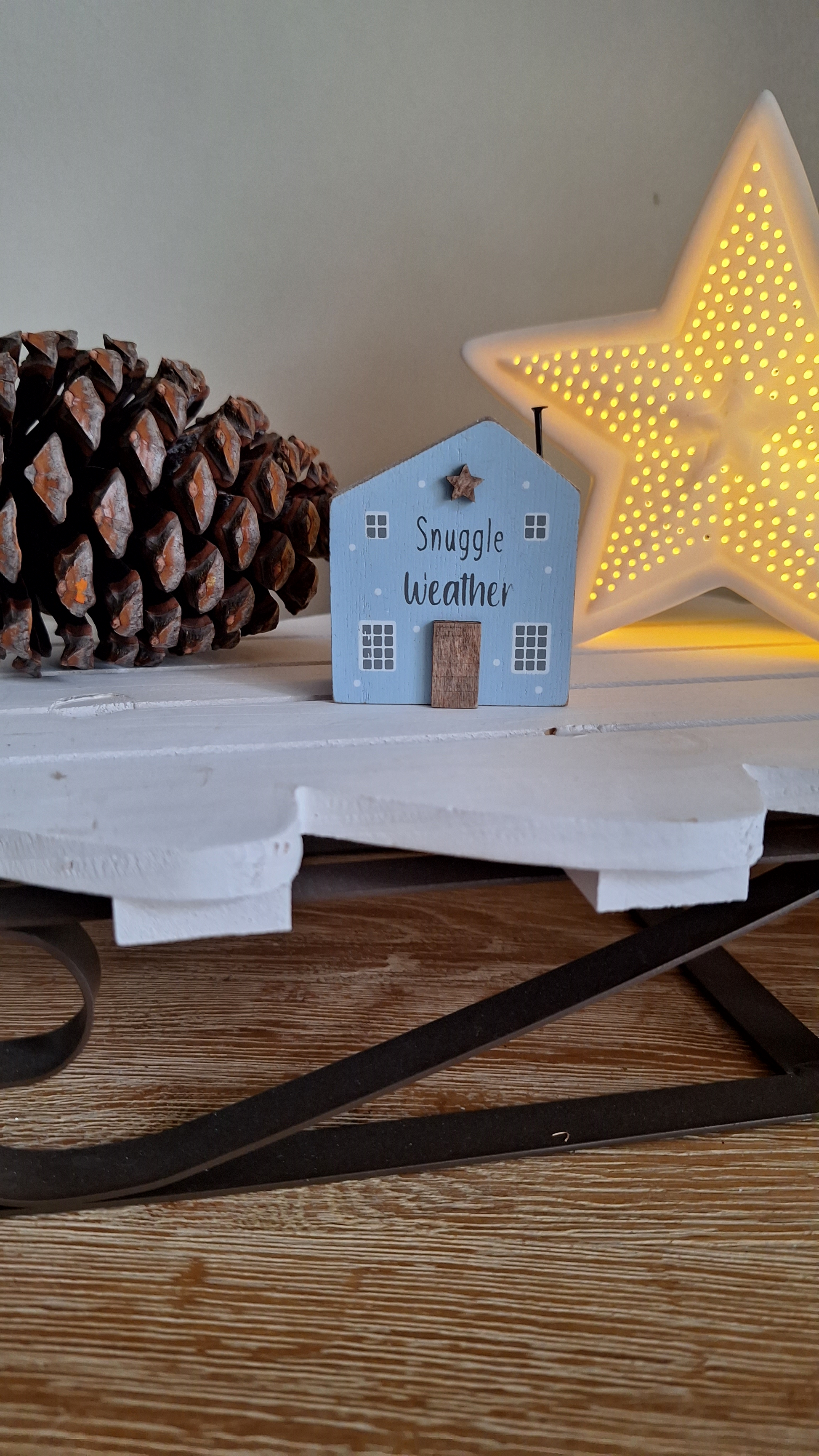 Introduce a touch of winter fairy-tale magic to your home with the Snuggle Weather House Block. This enchanting block features a blue snuggle weather house with a glittery roof and will be sure to fill your home with festive, cute vibes. Create a cosy atmosphere and get ready for the holidays!